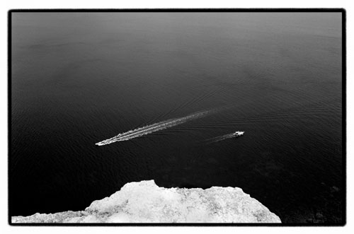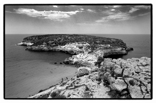 15枚の一連の写真は、2004年の夏にランペドゥーザで撮影されたものです。ニコラ・グアリーニ(Nicola Guarini)は、シチリア島の物語を彼なりの方法で表現をしようと試みました。これらの写真は、よく目にするようなドキュメンタリーで描かれるものとは非常にかけ離れ、表面上は対象的にも見える、作者の姿勢を表現したものです。実際に、作者は本当の意味での旅、別の言葉で言うなら”巡礼”に出かけたのでした。それは自分自身を振り返り、じっくりと考えをめぐらせ、現実の細かい部分にいたるまで他からの余計な影響を受けることなく、じっくりと見直すものでした。この旅は別な一面では、精神を自由に解放し自分の心の中を旅するものでした。それは、彼の主観的“視点”を消し去り、そうすることにより、彼の作品から作者の存在がだんだんと“消え去る”かのようになっていったのでした。